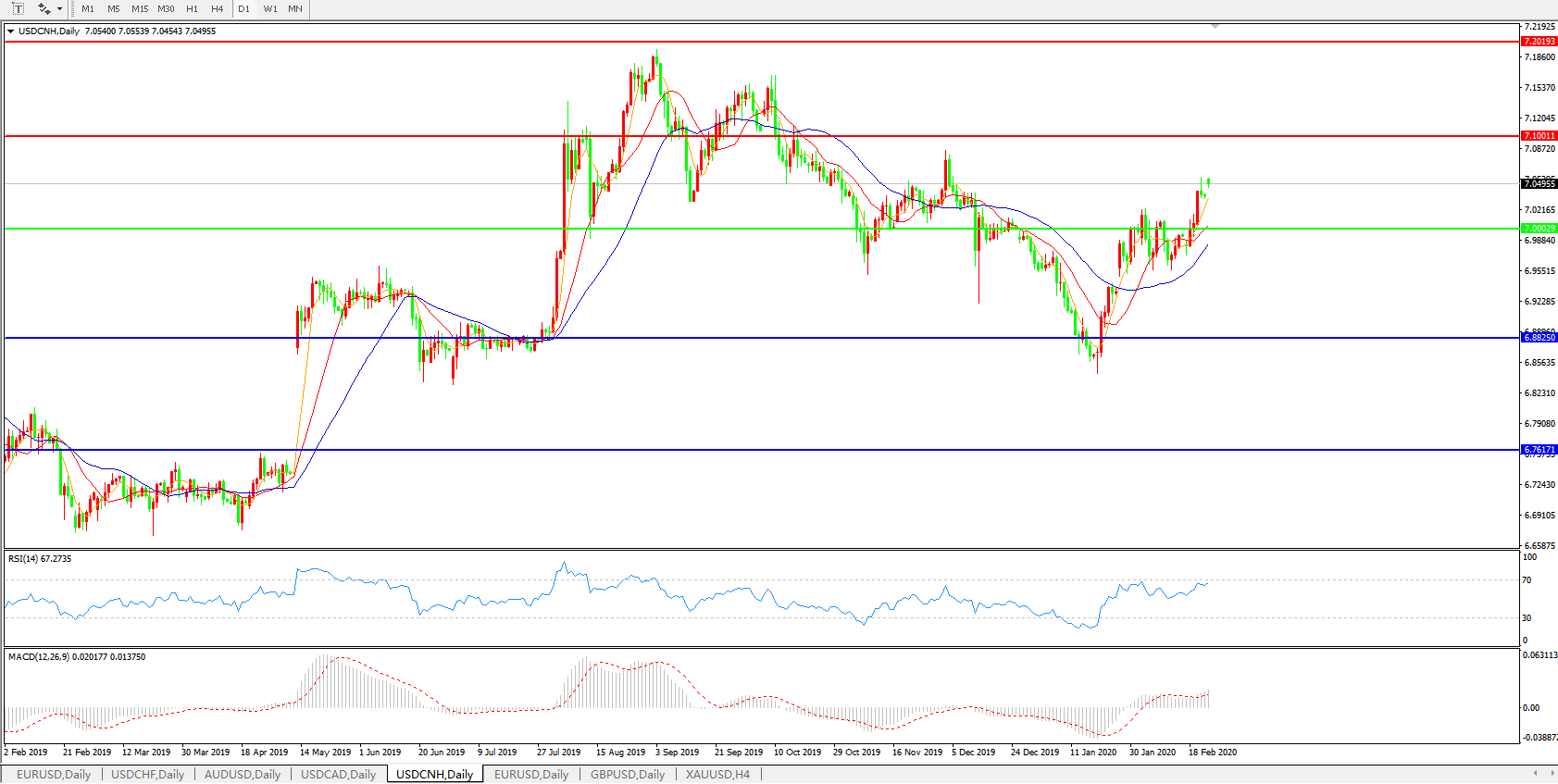 美元兑人民币USDCNH 日线图: