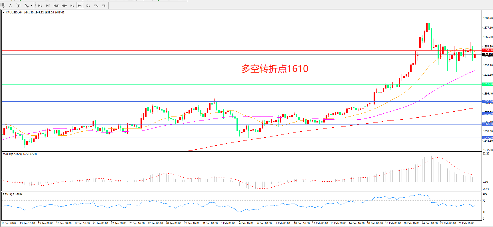 备选策略:在1610.00之下看跌,目标1650.00   1700.00