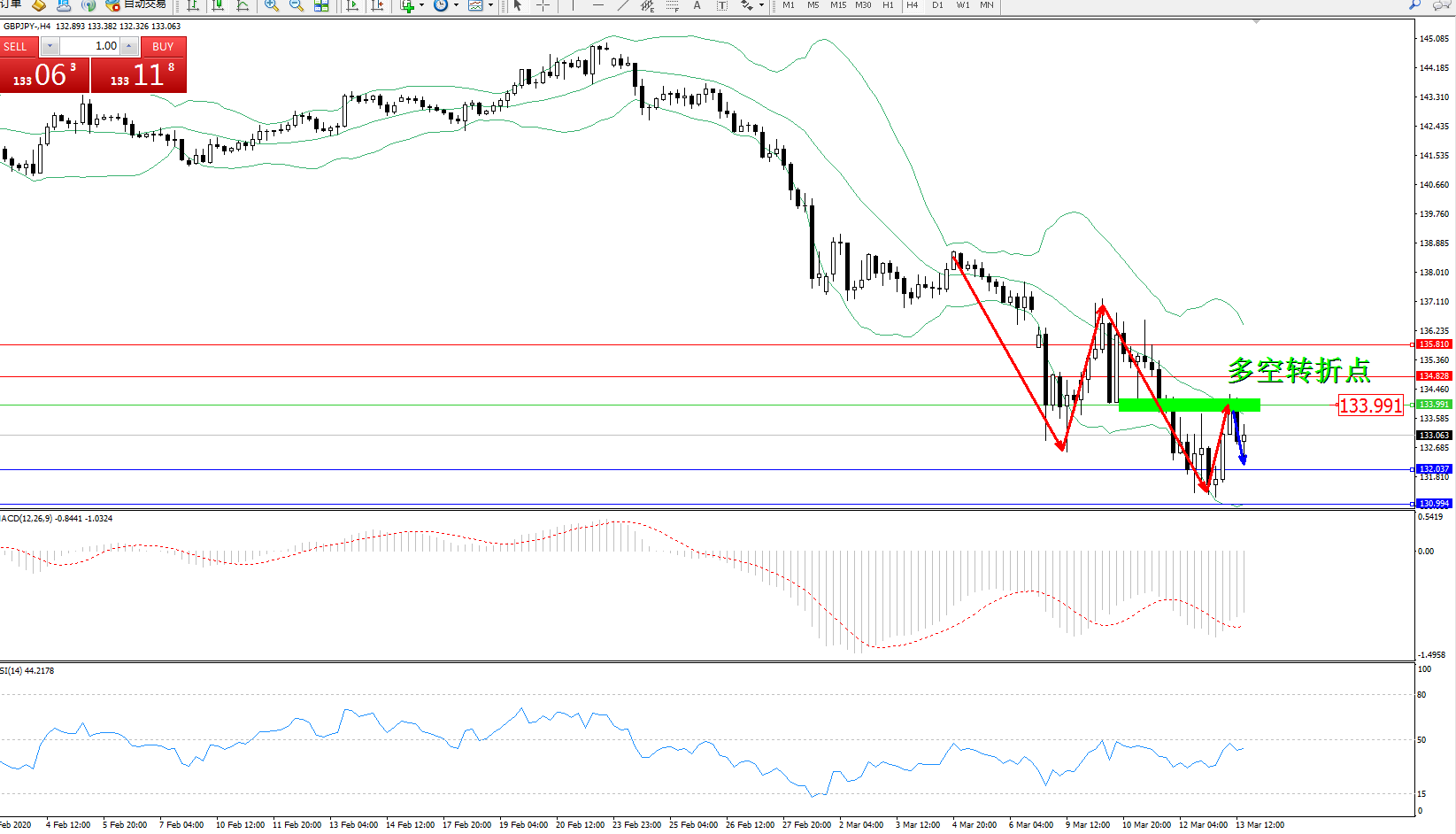 英镑兑日元现报133.43,涨1.43%;英国政府周三宣布规模达300亿英镑(390亿美元)的一揽子经济刺激计划,以应对新冠病毒疫情引发的衰退风险。预算预测机构称,这是自1992年以来规模最大的刺激计划,标志着该国实施了10年的撙节政策的结束。英国的疫情也非常严重;英国卫生部长纳丁·多里斯(Nadine Dorries)已确诊感染新冠肺炎。据了解,她曾在过去的一周内在议会与上百人会面,并且与英国首相约翰逊在唐宁街10号一同参加了招待会。这意味着包括英国首相约翰逊在内的多位政府官员都面临被感染的风险,这也是英镑本周大幅走弱的原因所在。英国首相鲍里斯·约翰逊警告称,超过10000名英国人可能已经感染新冠病毒,许多家庭可能会失去挚爱的家人。