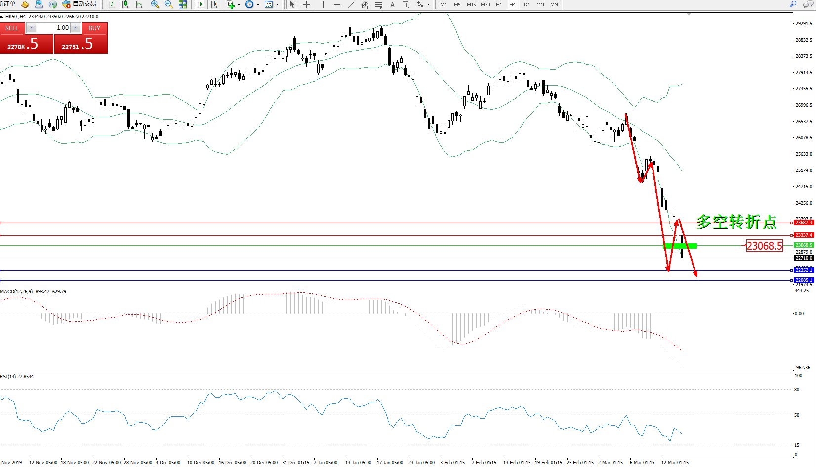 技术点评:空头动力持续下行态势良好,日前低位有再次触及乃至破位下探迹象,布林带指标车呈张口走势良好,持续扩大波幅中,MACD指标处于空头区域持续震荡下移态势良好,RSI指标处于空头区域维持宽幅震荡整理下移中;