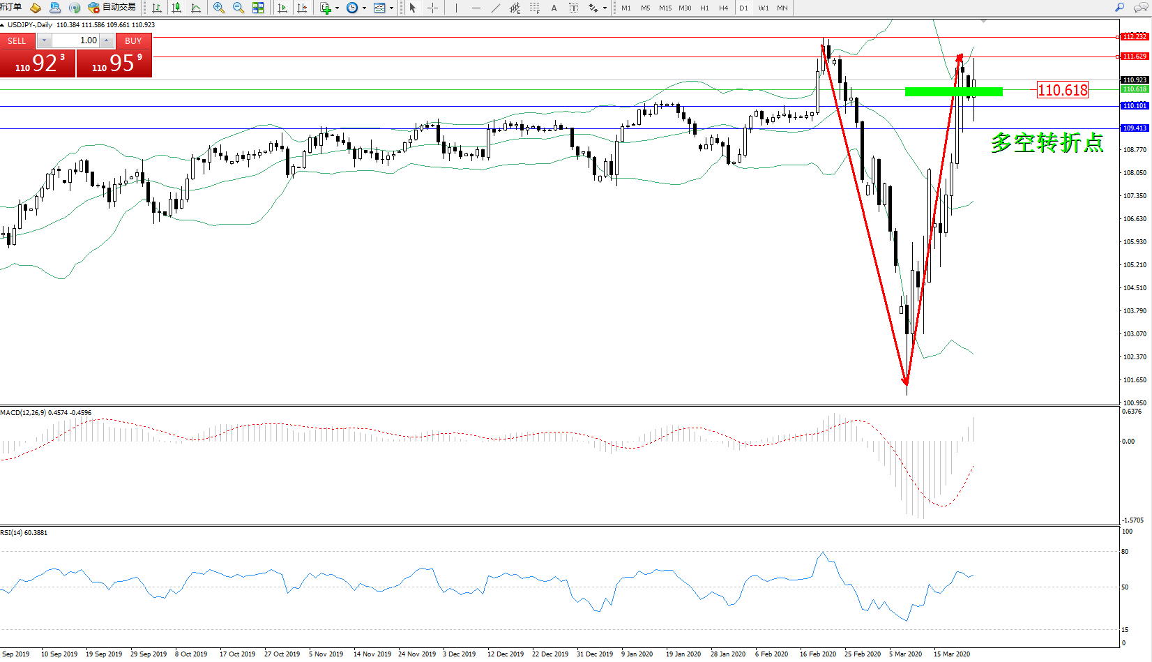 多空转折点:110.618