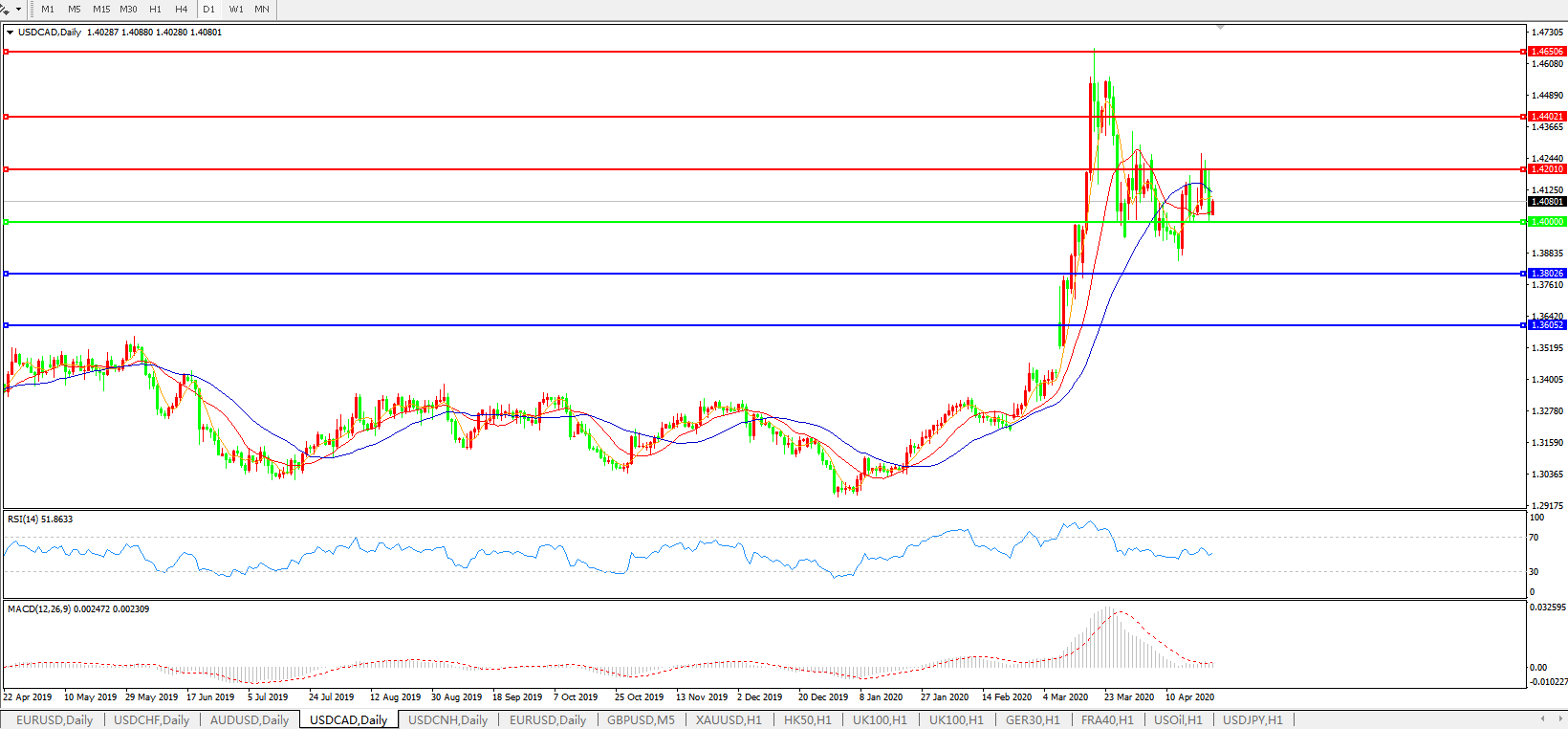 交易策略: 在1.4000之上,看涨,目标价位为1.4200、1.4400