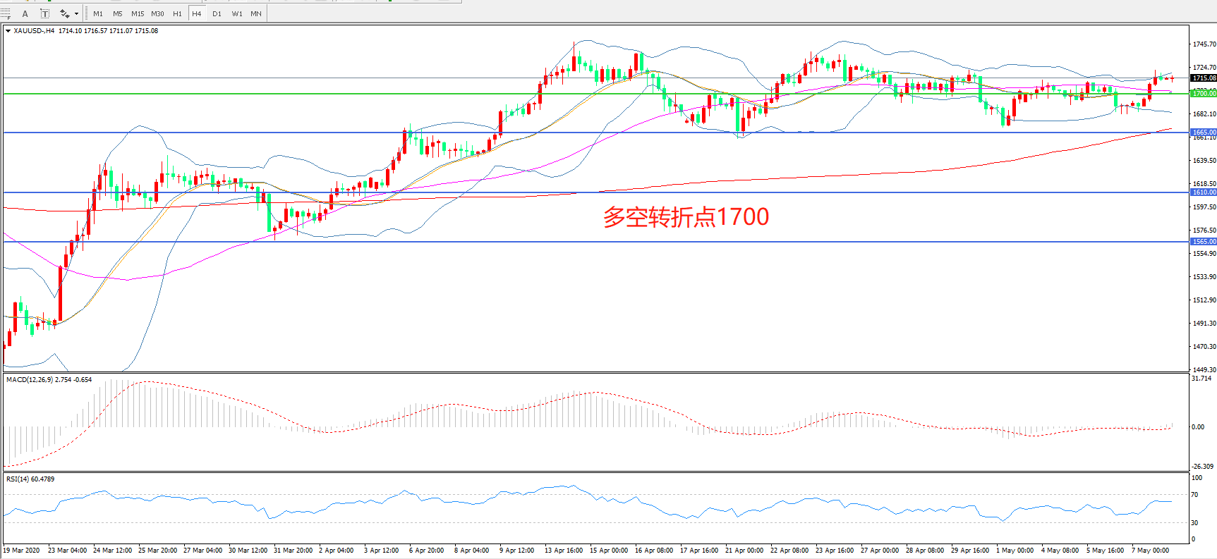 交易策略:  在1700.00 之上看涨,目标1750.00   1785.00