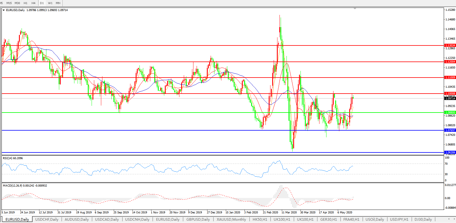德国数据靓丽刺激市场,欧美续升冲击1.10关口