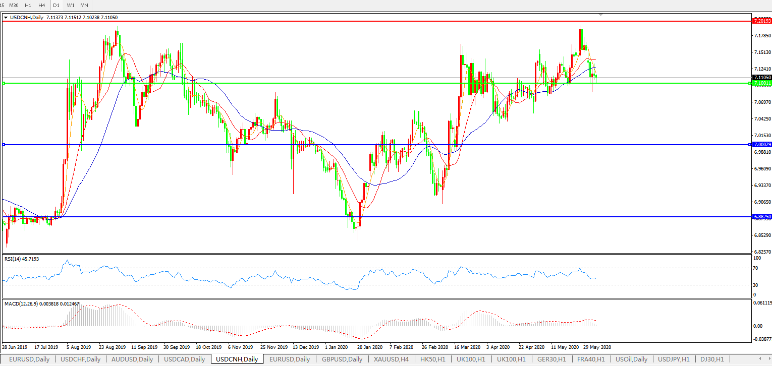 美元兑人民币USDCNH 日线图: