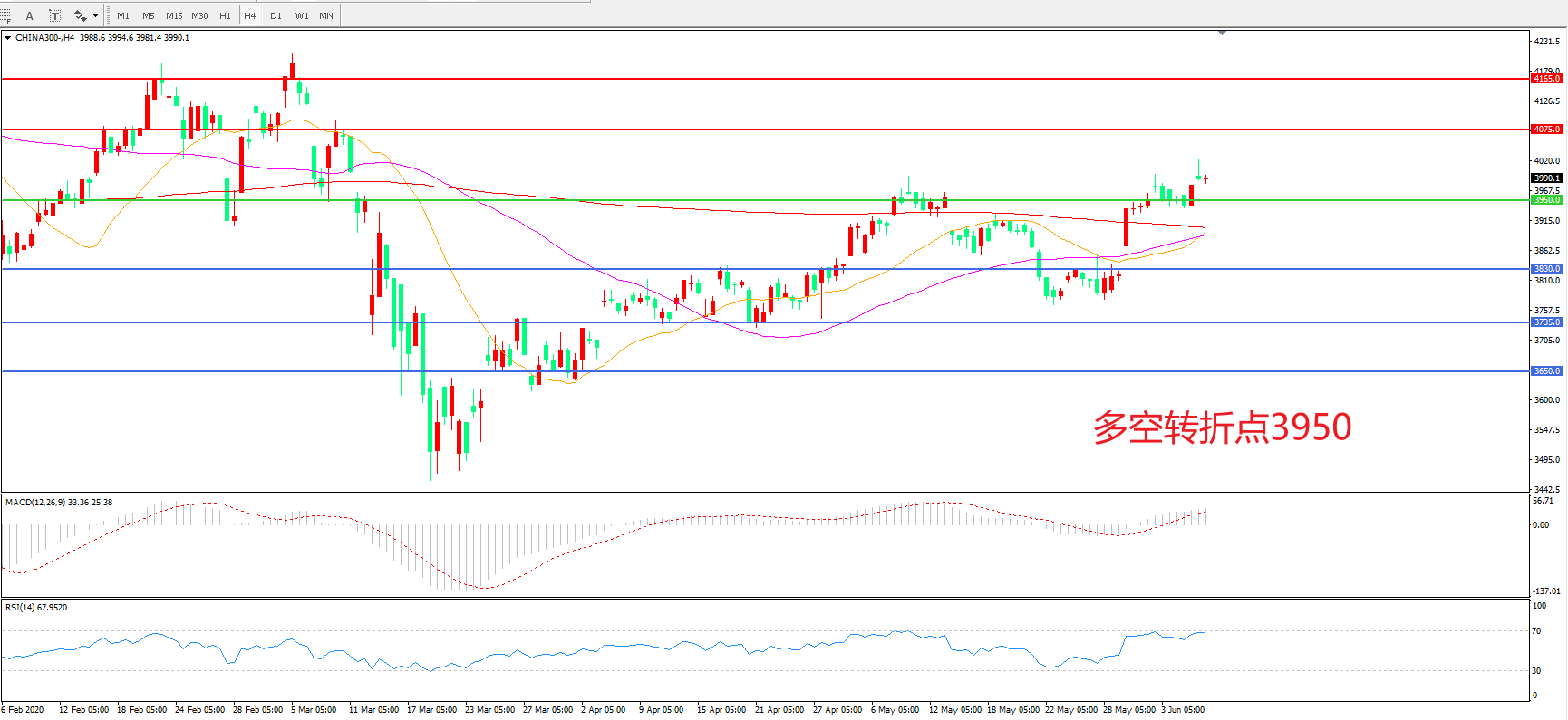 交易策略:在3950之上看涨,目标4075.00       4165.00