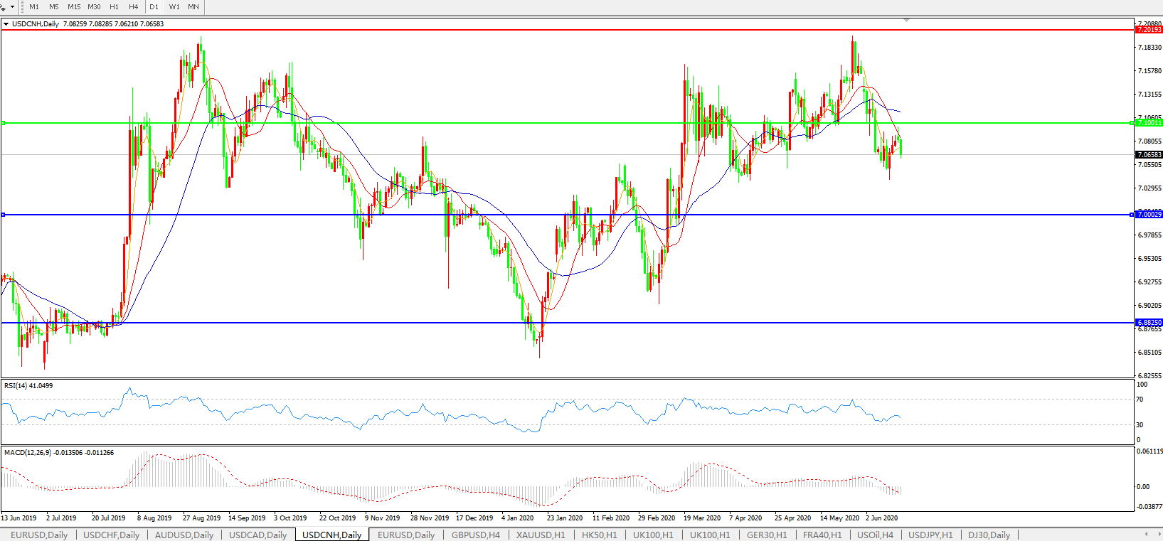 美元兑人民币USDCNH 日线图: