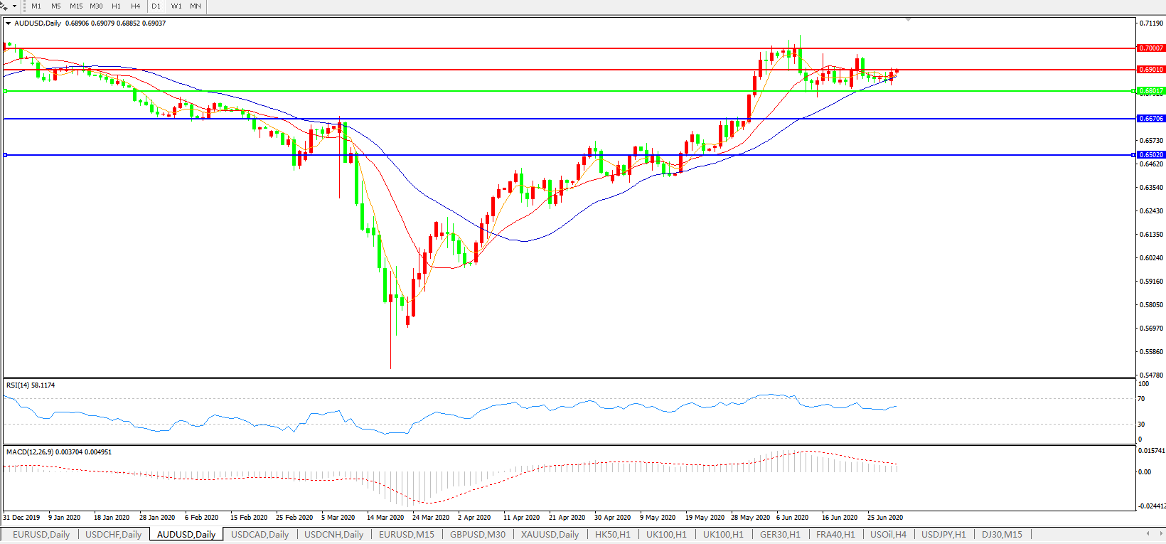 澳元兑美元AUDUSD    日线图: