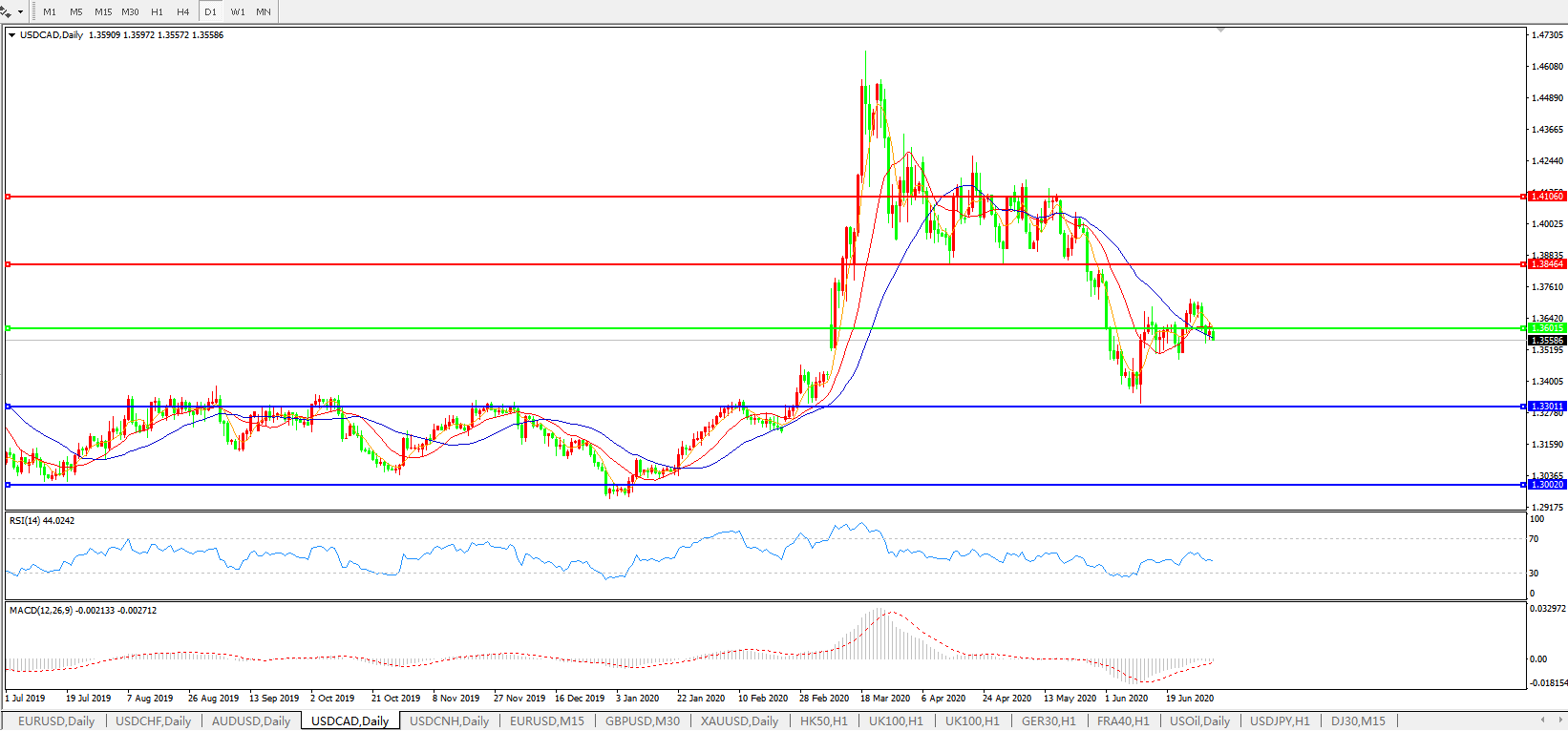 美元兑加元USDCAD    日线图: