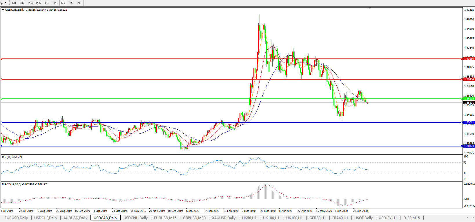 美元兑加元USDCAD    日线图: