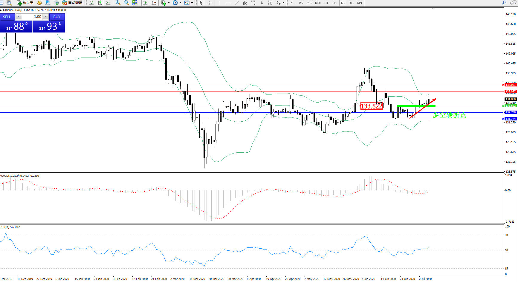 英镑兑日圆弱势震荡上移至134.918附近整理,英国国家统计署公布的数据显示,在英格兰地区新冠病毒检测呈阳性的患者中,仅有22%的人在检测当天报告出现相应症状。报告得出结论说明有很大一部分新冠病毒携带者为无症状患者。稍早英国统计局稍早公布数据显示,英国第一季度单位劳动力成本增长6.2%,创2006年以来最大增幅。英国财政部表示,截止至75日,一共有940万个职员在疫情期间停薪休假,第一季度工人平均产出同比下降3.1%。英政府打算暂时提高房产交易印花税起征点并减免酒店餐饮服务业增值税,以缓解新冠疫情冲击、刺激经济复苏。