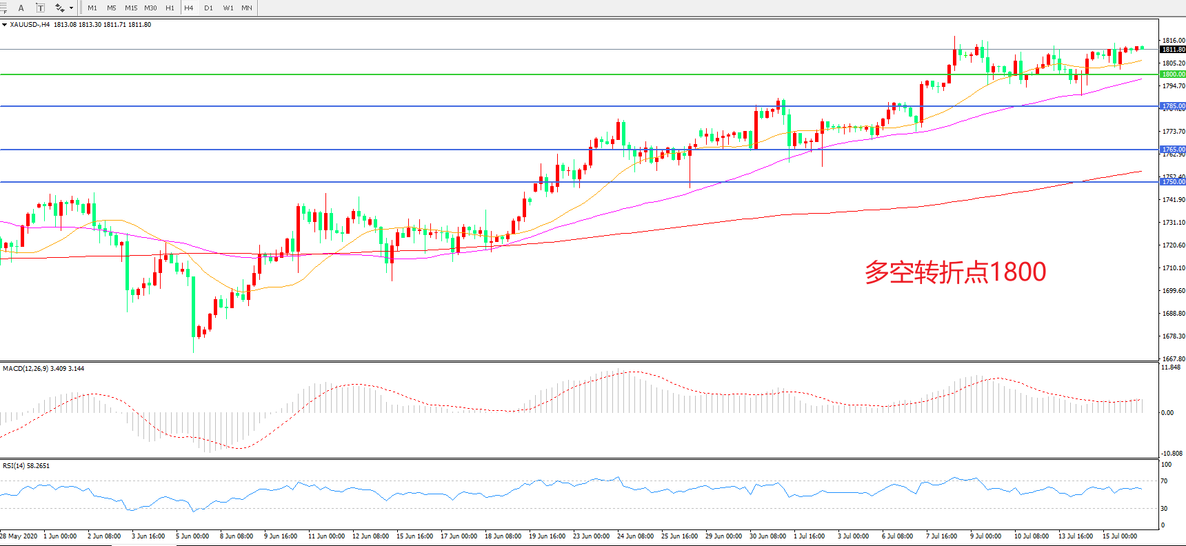 交易策略:在1800.00之上看涨,目标1820.00 1845.00