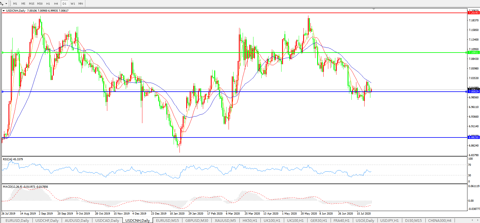 美元兑人民币USDCNH    日线图: