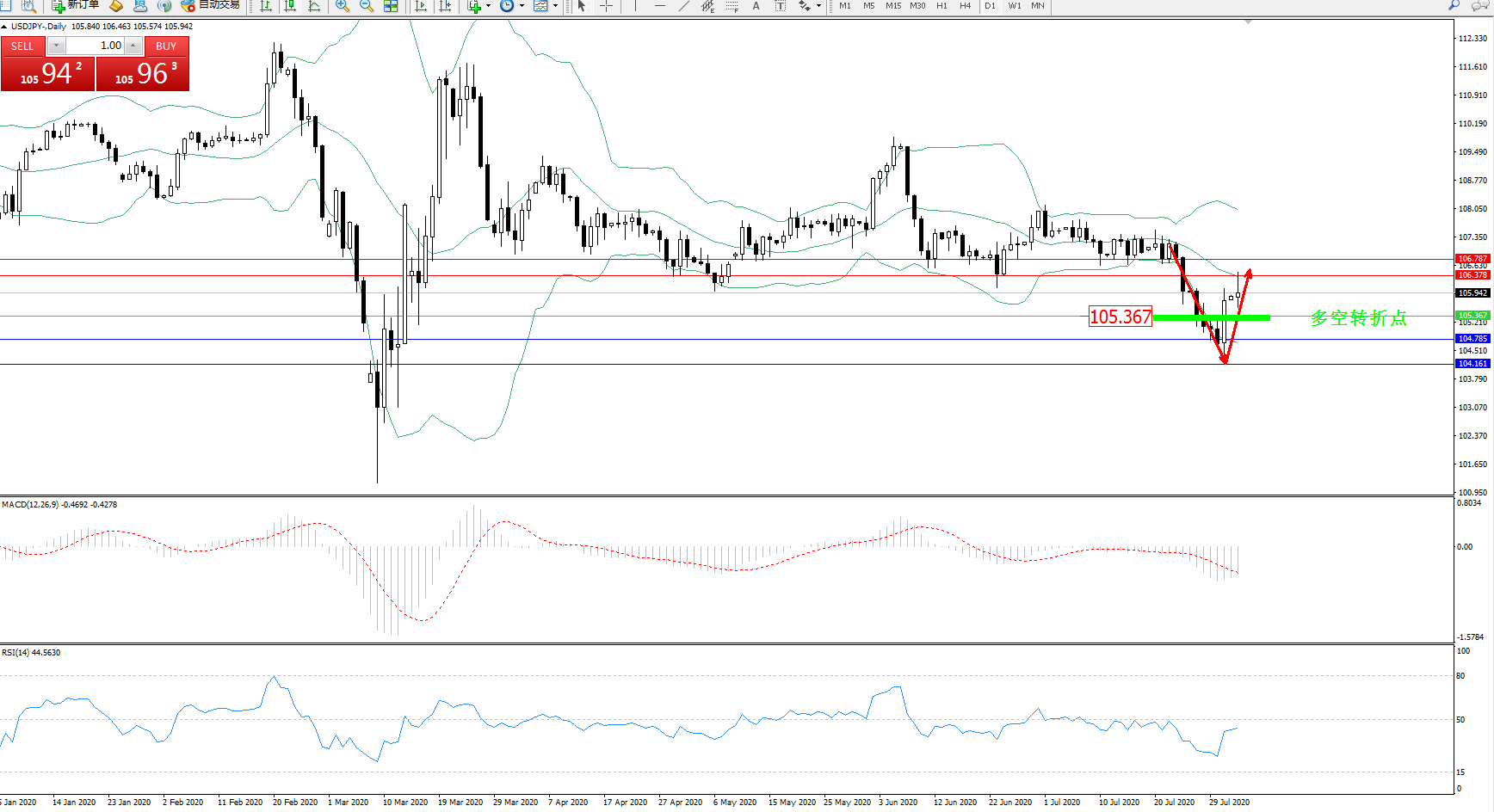 多空转折点:105.367