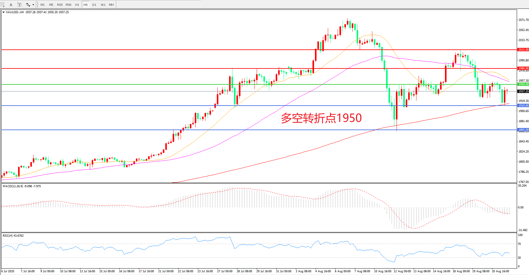 交易策略:在1950.00之下看跌,目标1910.00 1865.00