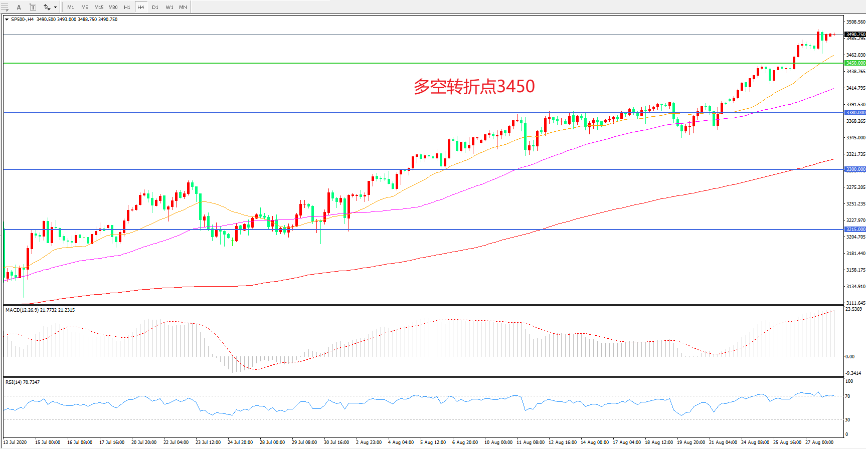 多空转折点:3450.00