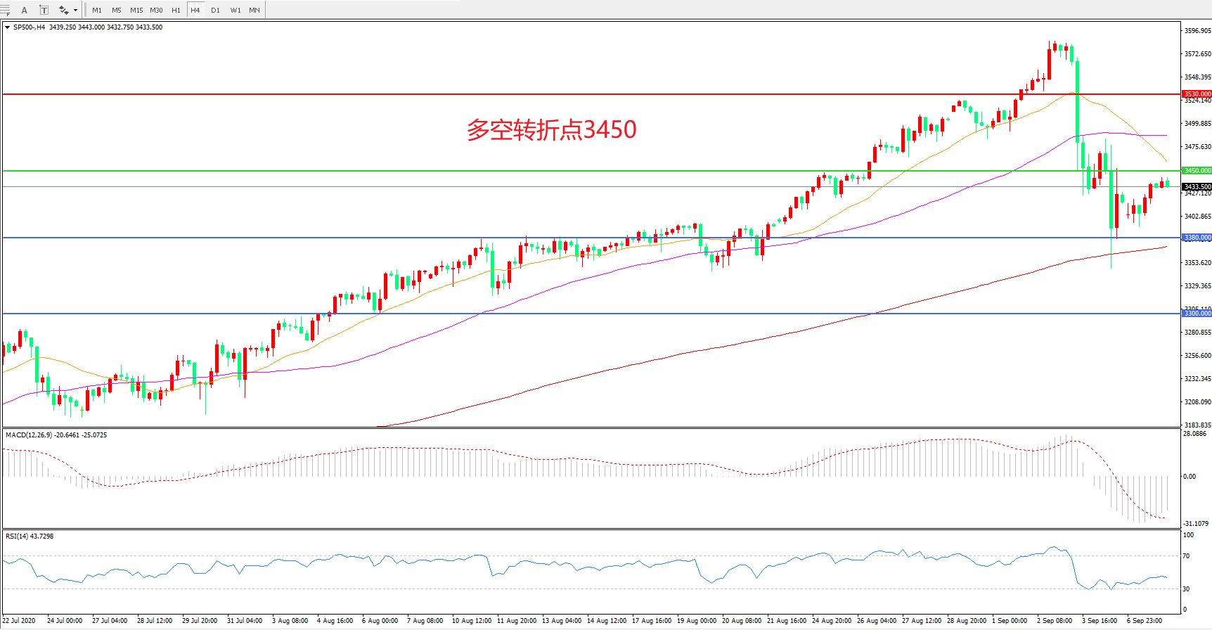 多空转折点:3450.00
