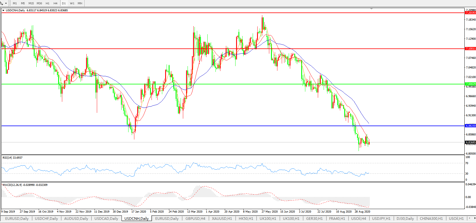 美元兑人民币USDCNH 日线图: