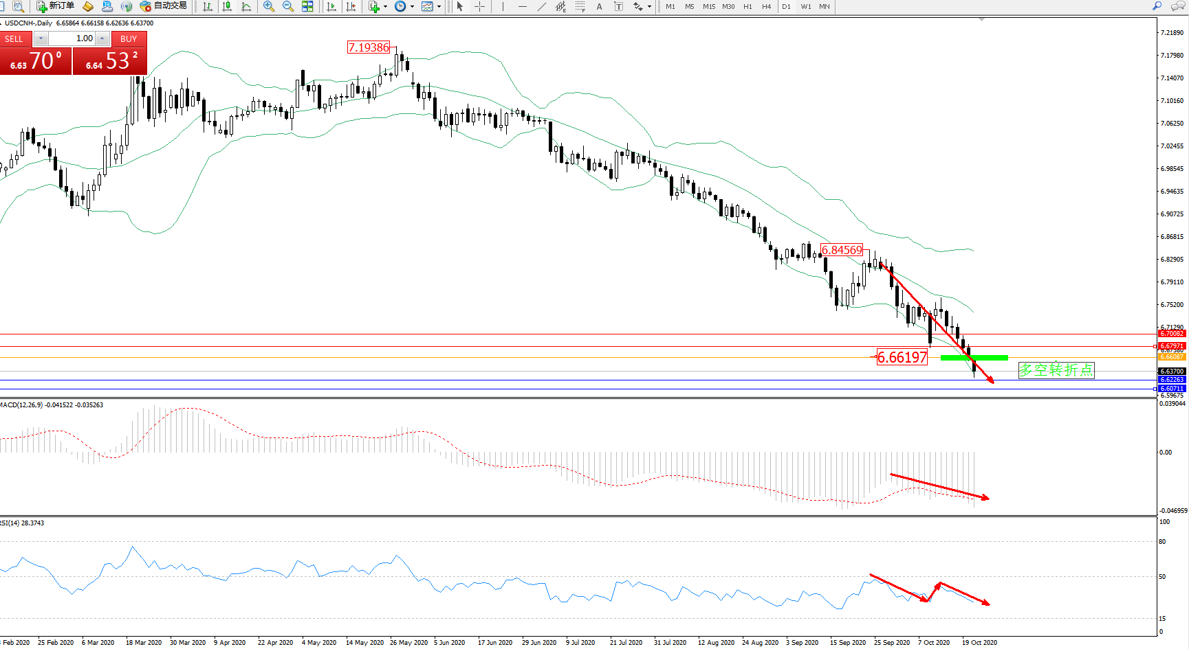 交易策略:6.66197下方看跌,目标6.62263、6.60711