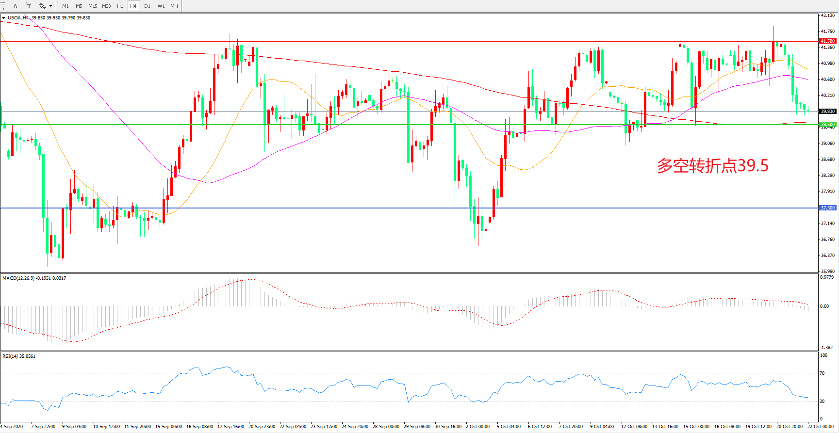 周三(10月21日),根据美国能源信息署公布的数据显示,EIA原油库存降幅略低于预期,但汽油库存不降反增,再度引发市场对需求放缓的担忧,美国WTI原油重挫4%, 收报39.75美元/桶,创9月21日以来最大收盘跌幅。欧美疫情卷土重来,令未来的原油需求受到明显抑制,汽油库存增多是佐证这一预期改变的迹象。