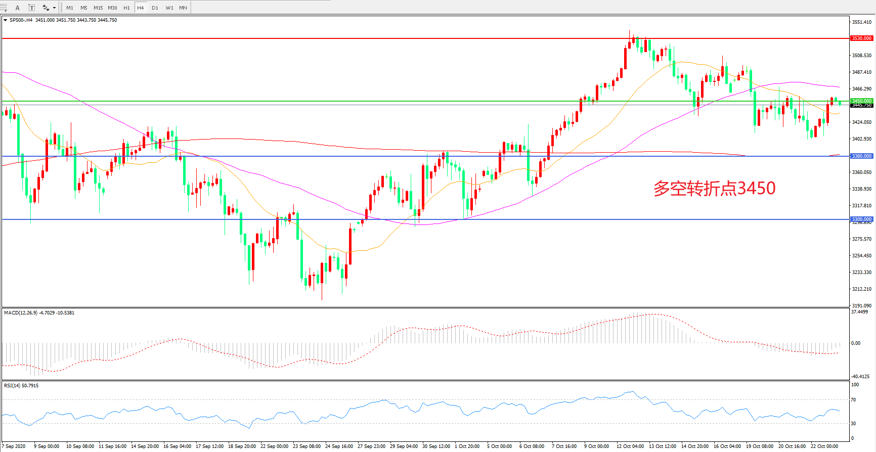 多空转折点:3450.00