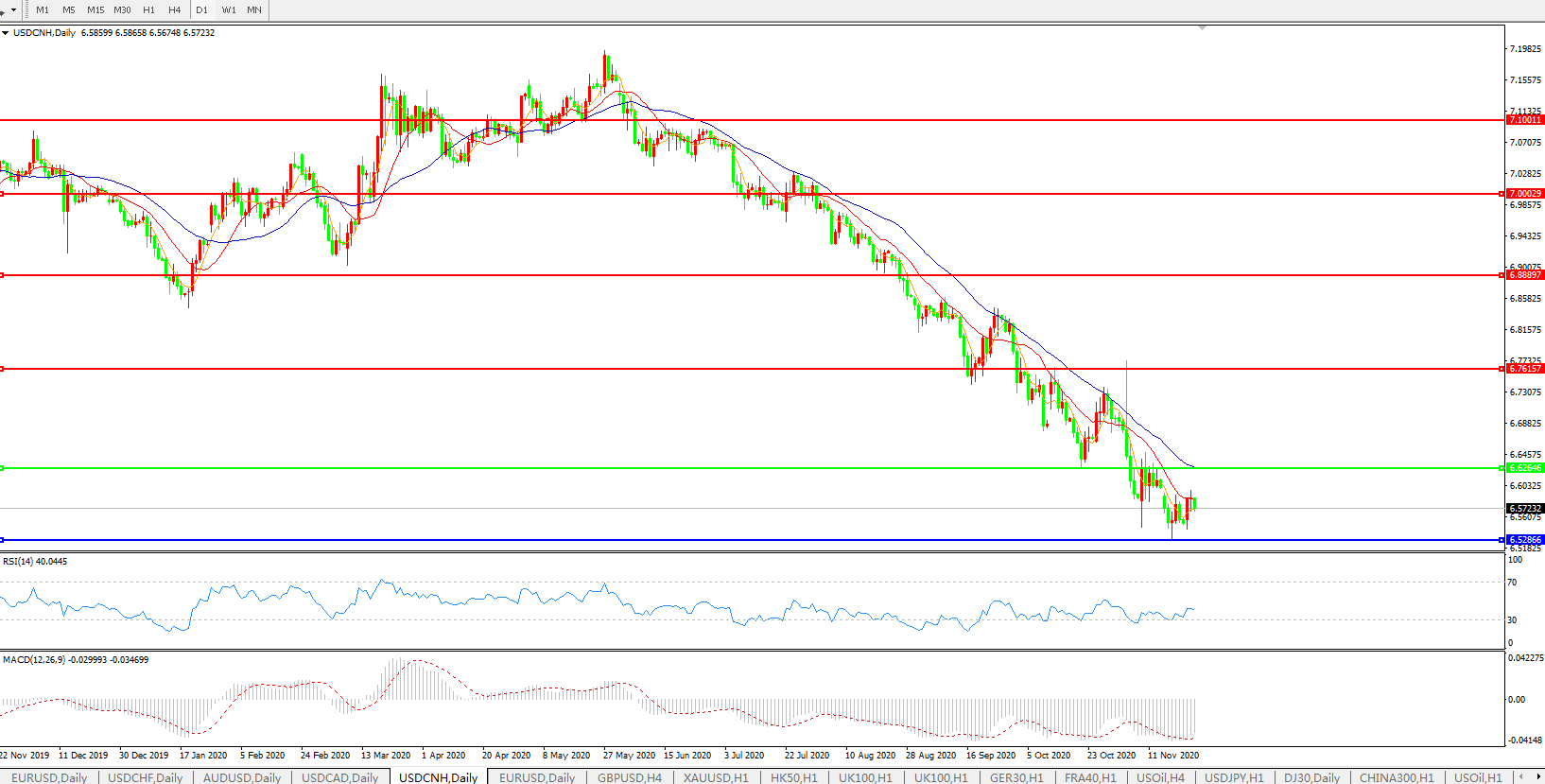 美元兑人民币USDCNH    日线图: