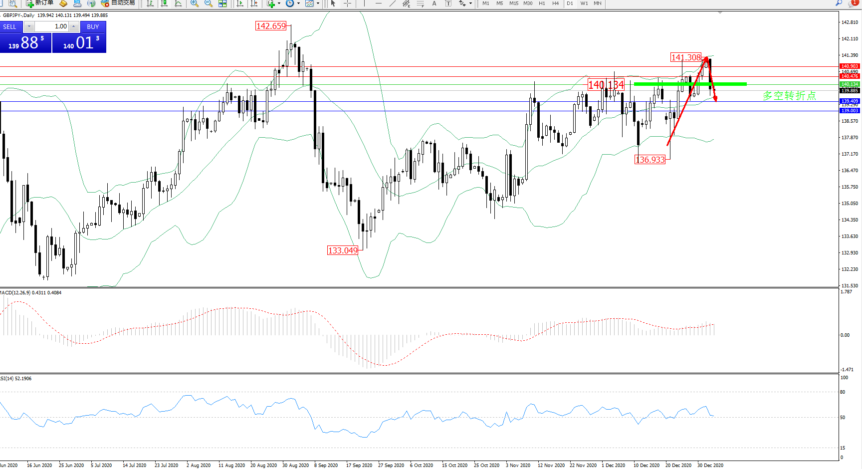 英镑兑日圆高位回撤至139.885附近整理,英国服务业将在2021年二季度强劲反弹;预计到4月份,英国将有一半人口接种新冠疫苗;英国将继续维持宽松货币政策和扩张财政政策,以支撑经济增长。高盛并预计,英国2021年GDP有望增长7%,高于市场平均预期的5.4%。随着美元转弱,欧元区和英国相继推出新的经济刺激政策,多款新冠疫苗研发成功且投入应用,且英欧之间尽最大可能避免了无序脱欧,欧元和英国达成脱欧后贸易协议,保留英国对欧盟单一市场的零关税、零配额准入,但欧盟尚未决定是否要给予英国金融市场准入。