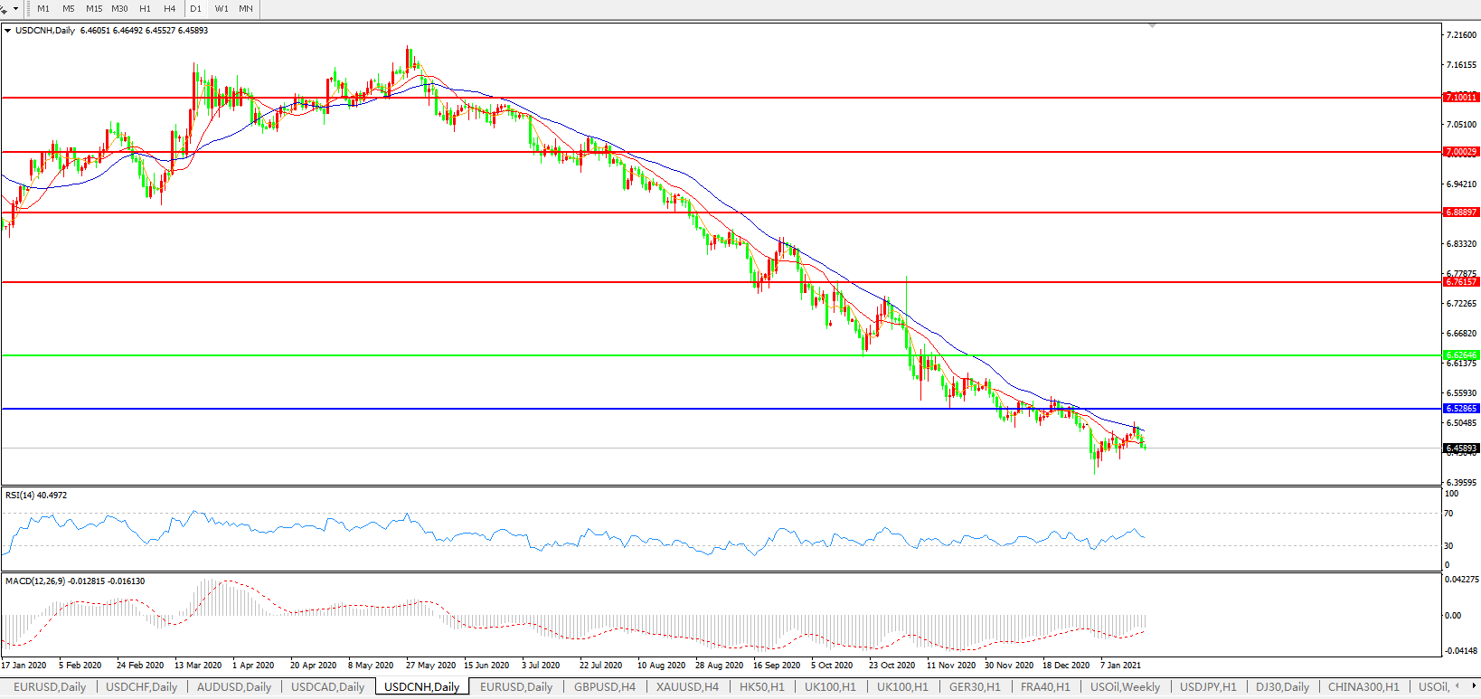 交易策略: 在6.6265之下,看跌,目标价位为6.5286,然后为6.3500。