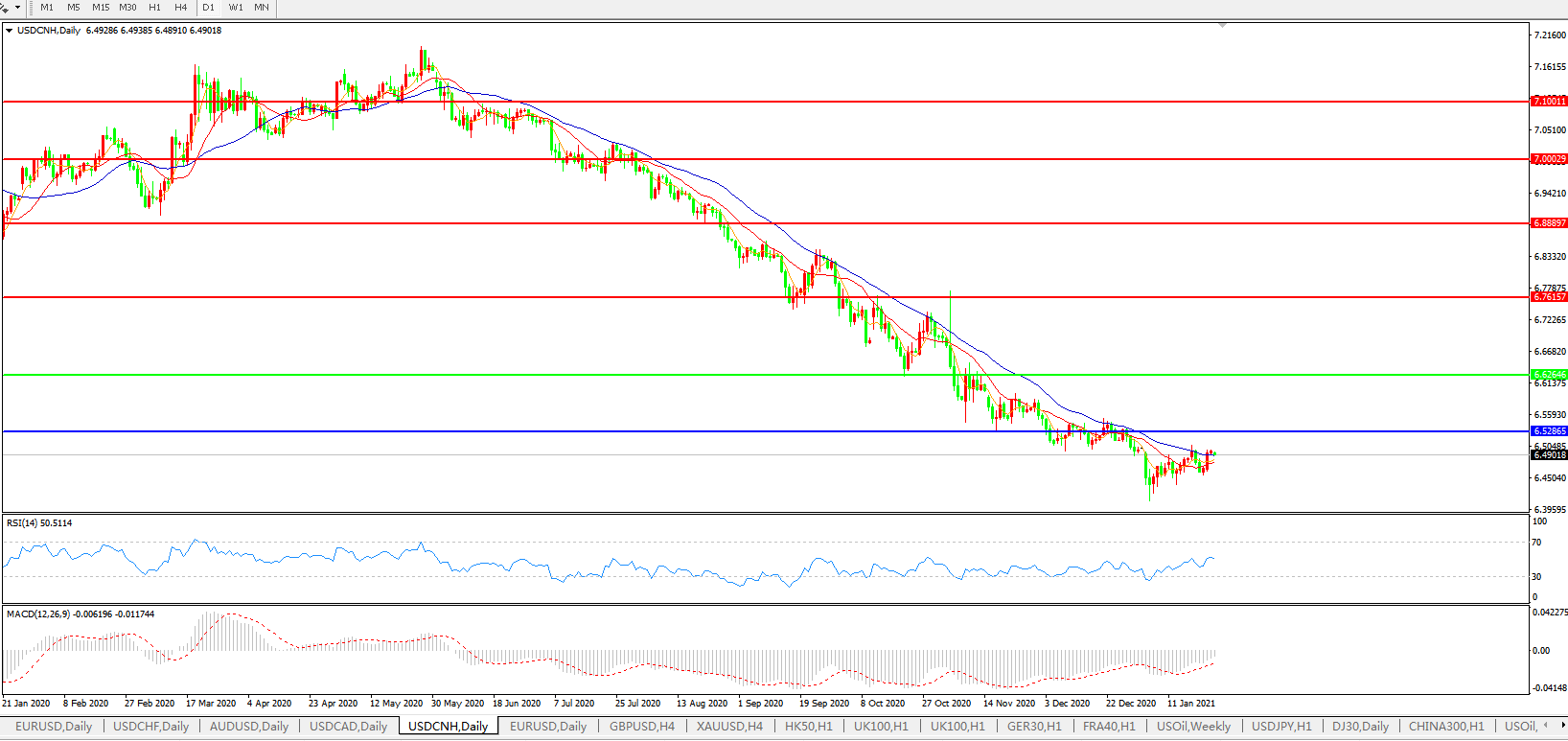 备选策略: 在6.6265之上,看涨,目标价位为6.7615,然后为6.8889。