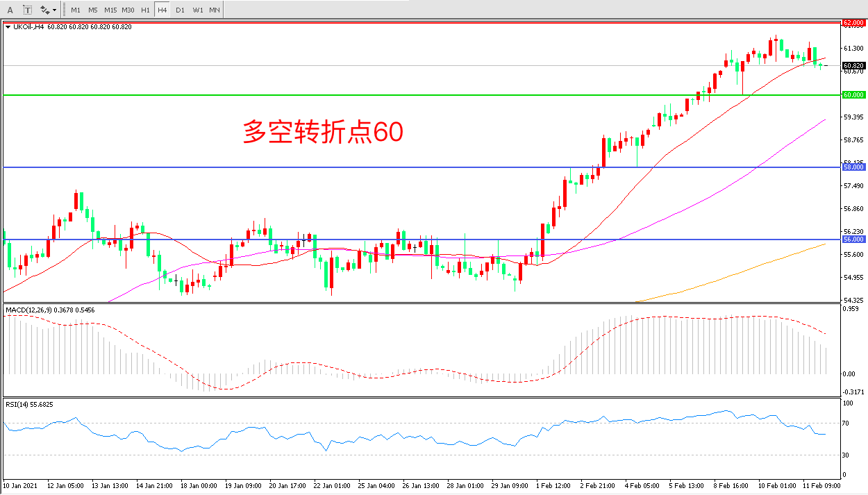 交易策略:  在60.00之上看涨,目标62.00                              65.00