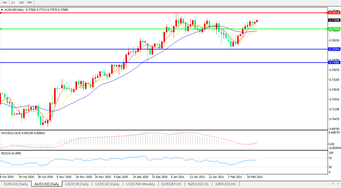 备选策略:0.7700上方看涨,目标0.7820、0.8000