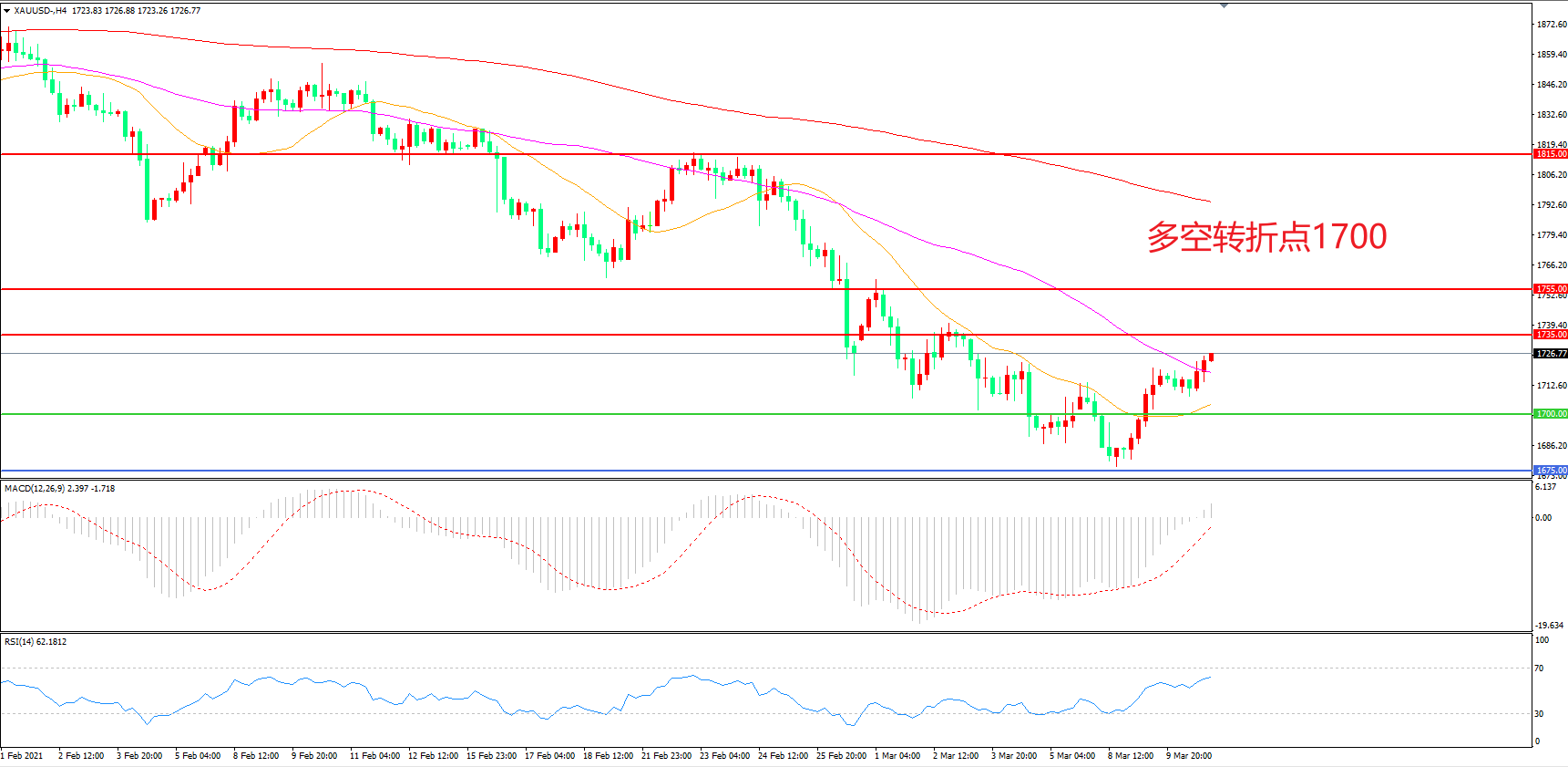 多空转折点:1700.00