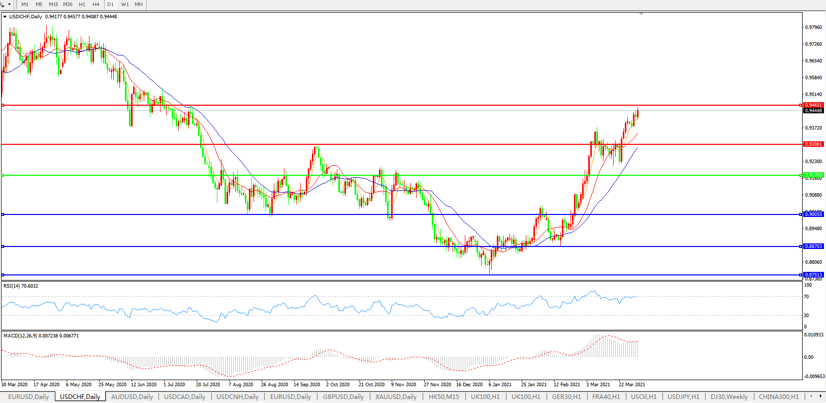美元兑瑞郎USDCHF    日线图:
