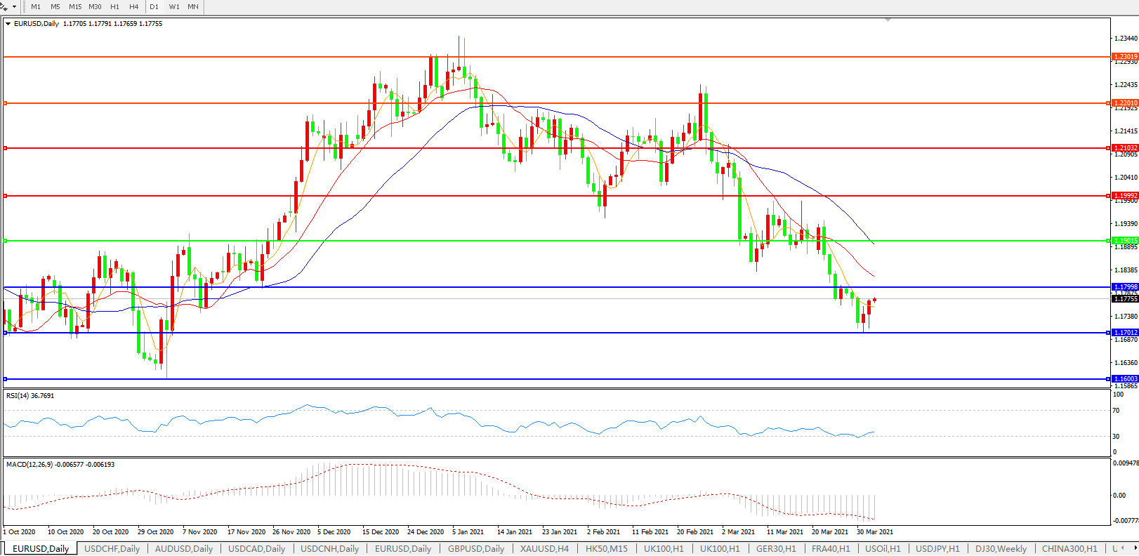 欧元兑美元EURUSD   日线图: