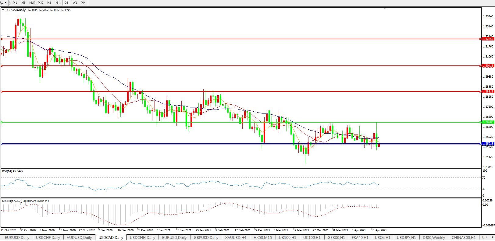 美元兑加元USDCAD    日线图: