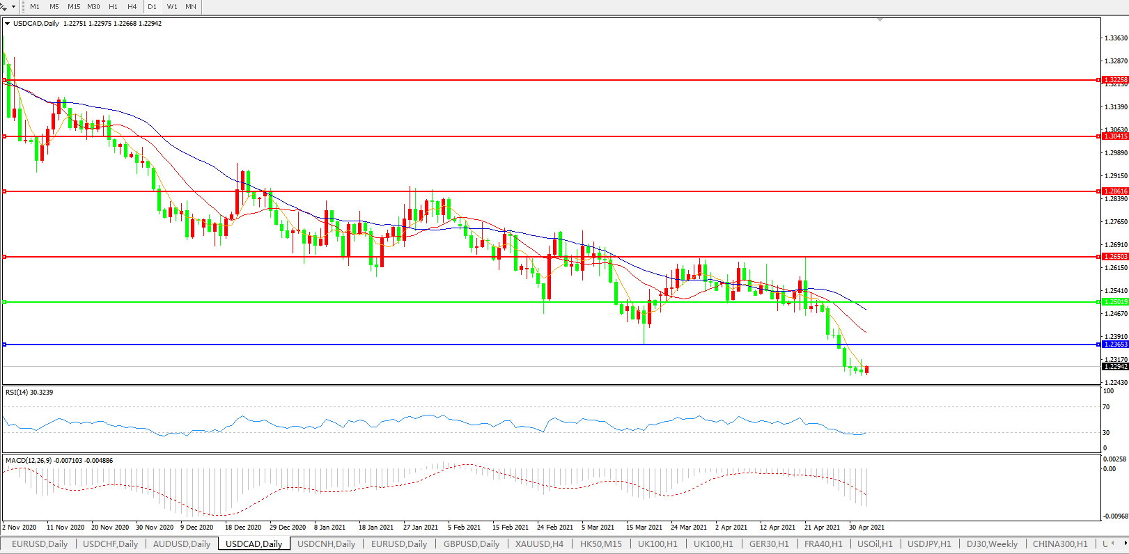 技术面简析:日线图均线呈有序空头排列,汇价骤跌后弱势整理,MACD运行于0轴下方且量能有下行放量迹象,RSI走弱,预计短期汇价大概率将进一步下行。