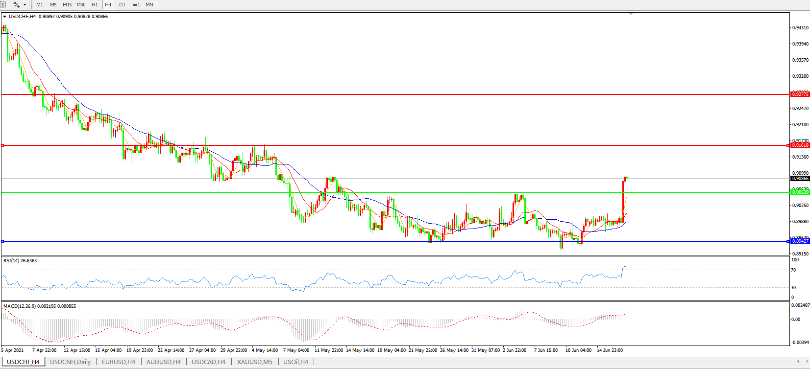 美元兑瑞郎USDCHF 4小时图: