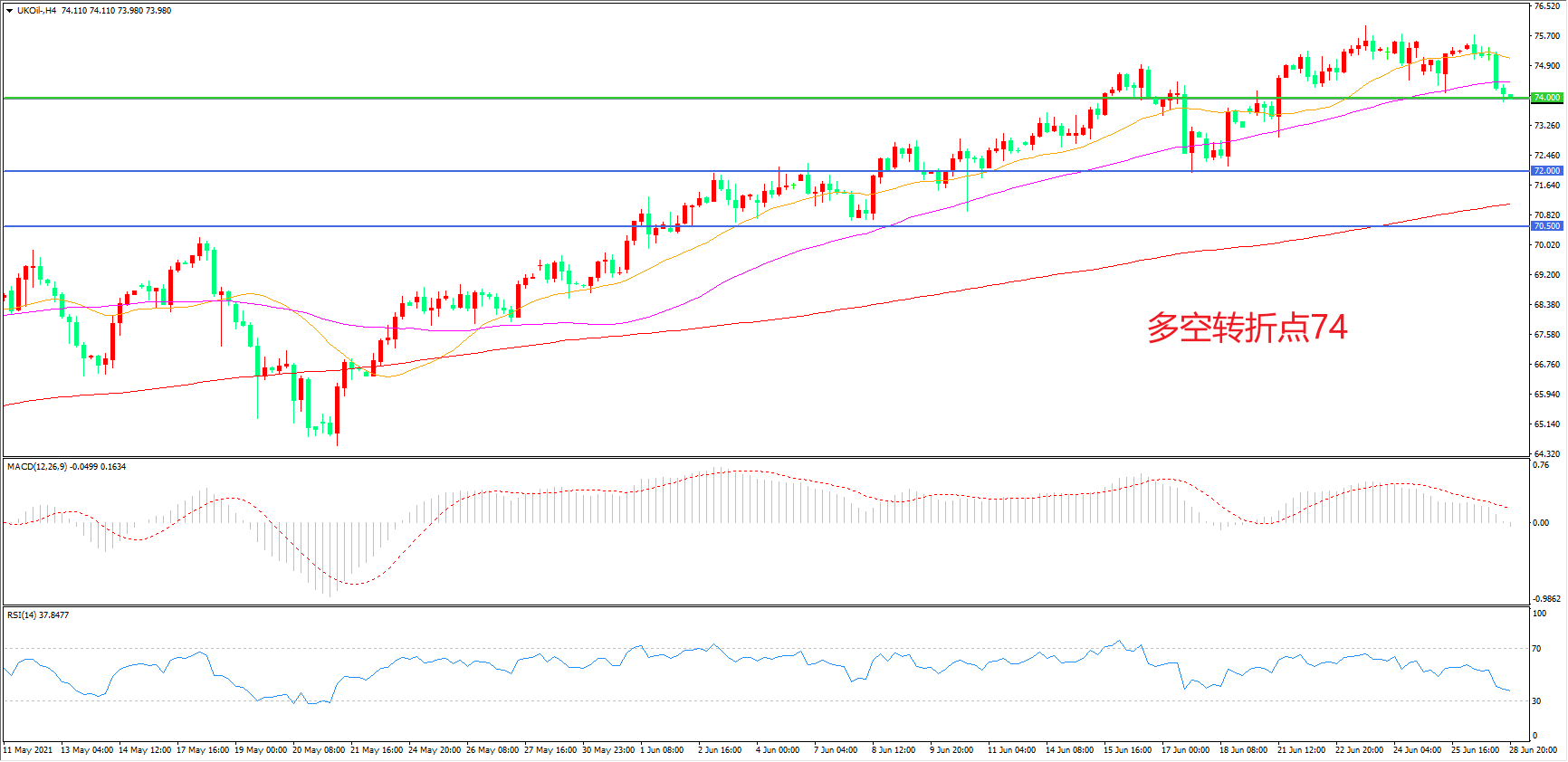 交易策略:在74.00之上看涨,目标77.00 80.00