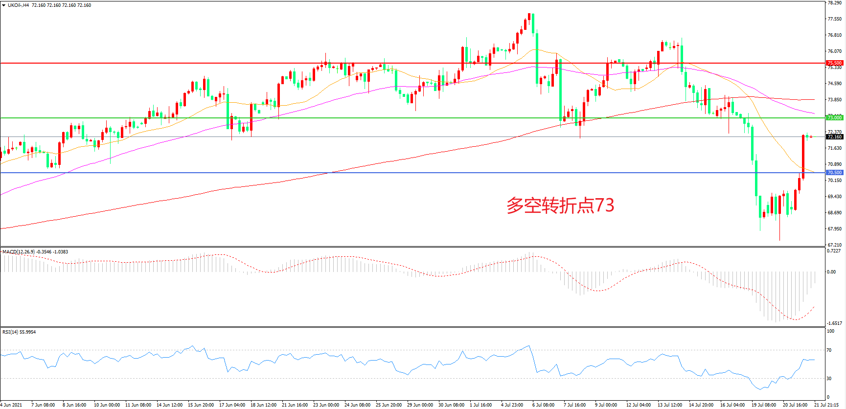 多空转折点:73.00