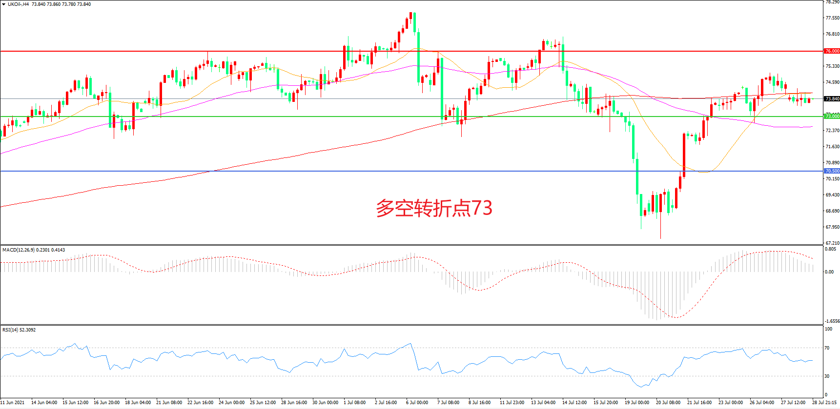 多空转折点:73.00