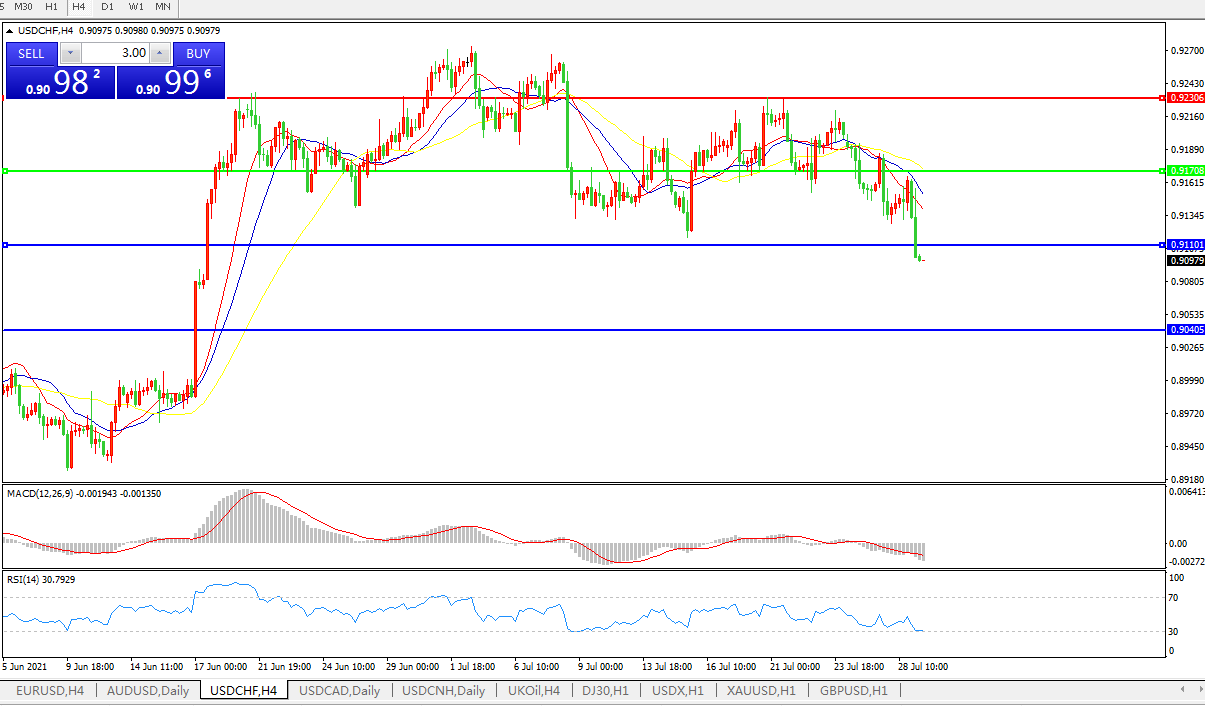 美元兑瑞郎USDCHF 4小时图: