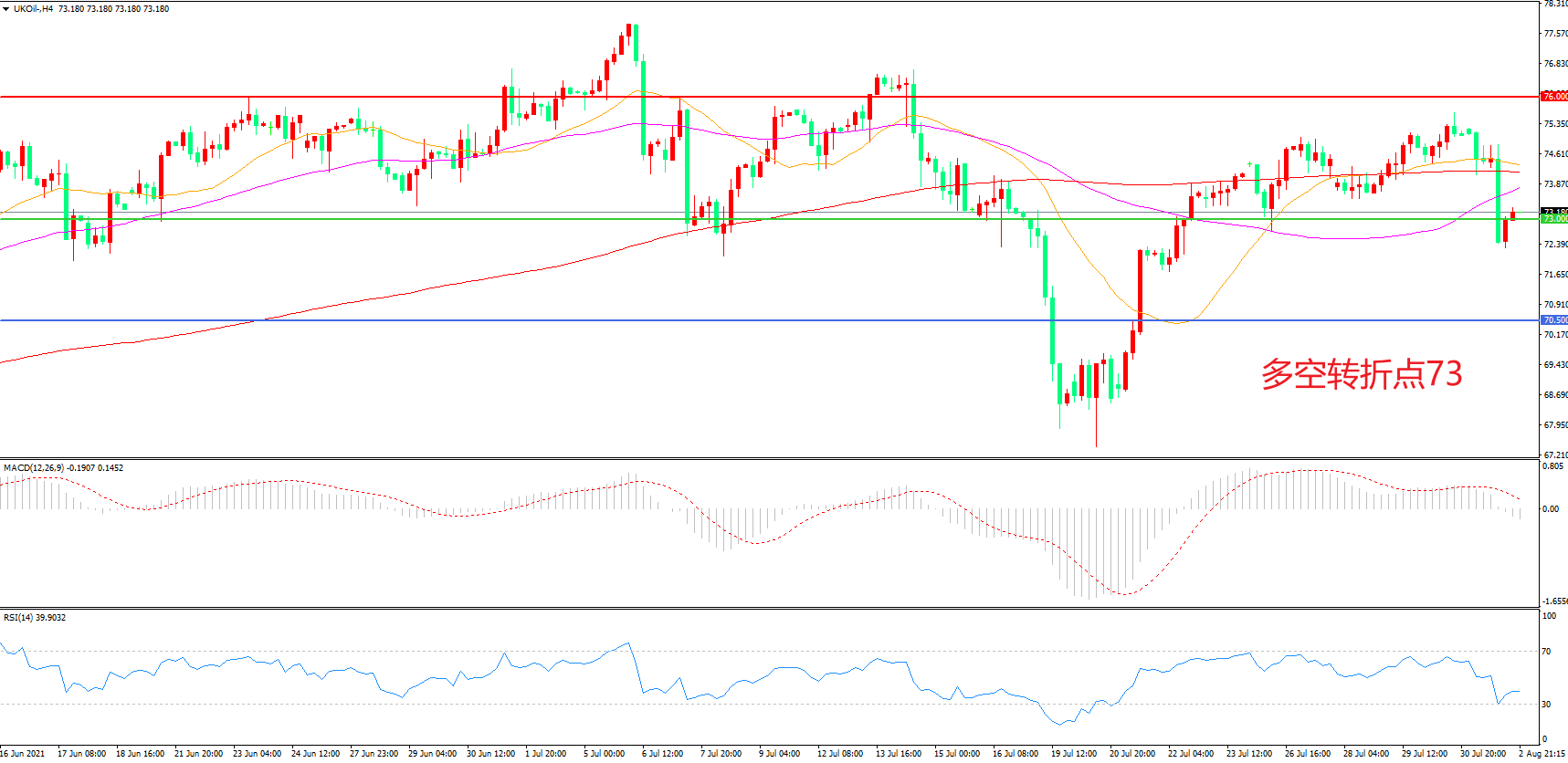 多空转折点:73.00