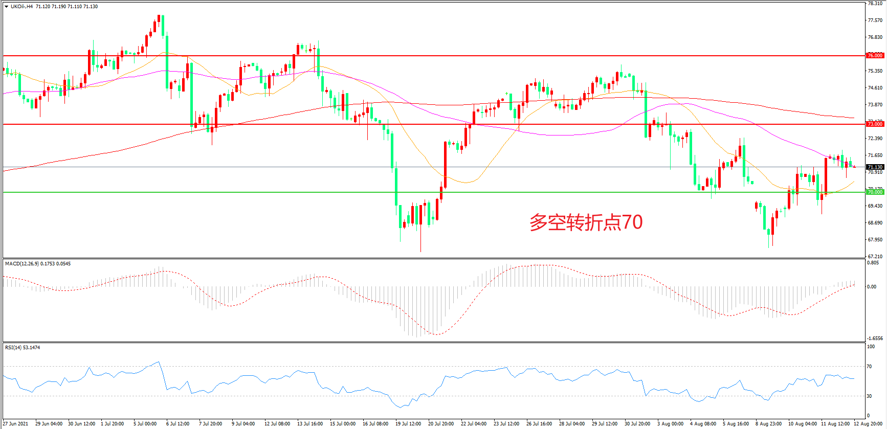 交易策略:在70.00之上看涨,目标73.00 76.00