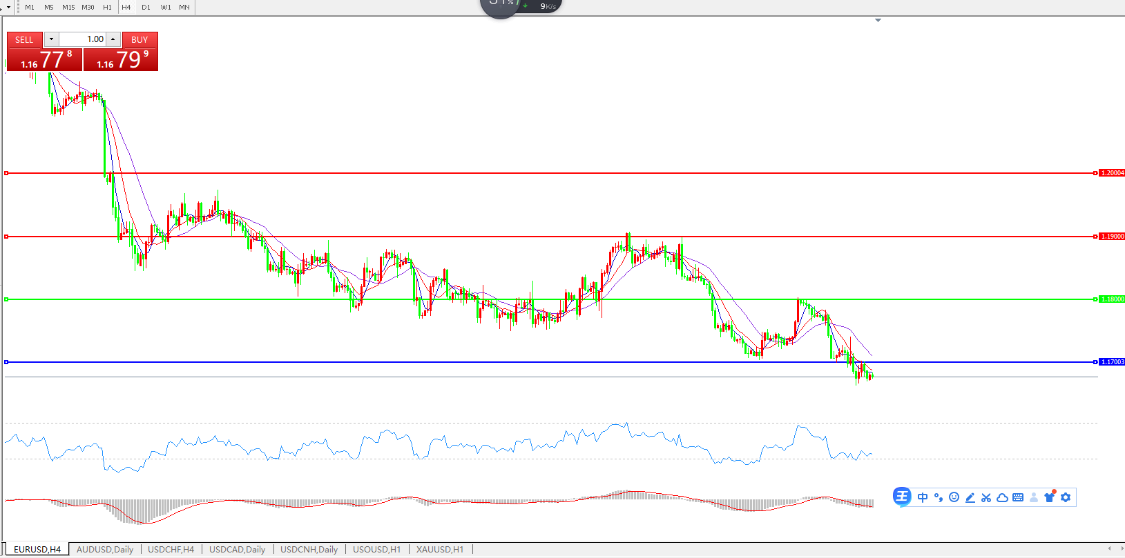 欧元兑美元EURUSD 4小时图: