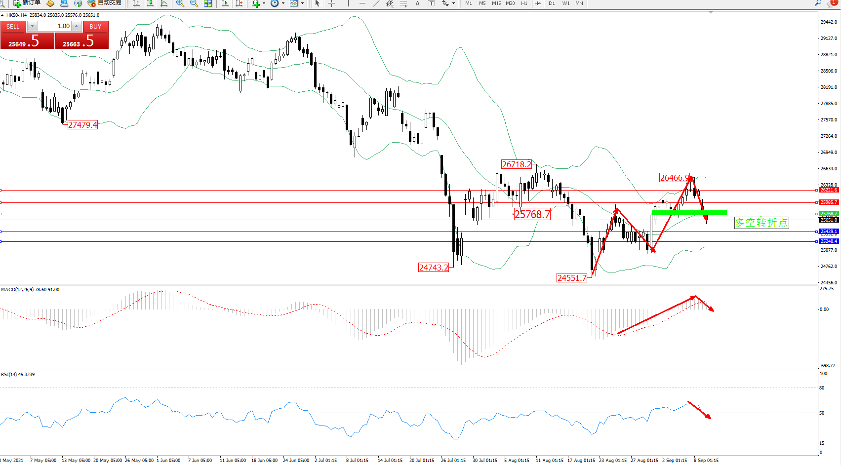 交易策略:25768下方看跌,目标25429、25240