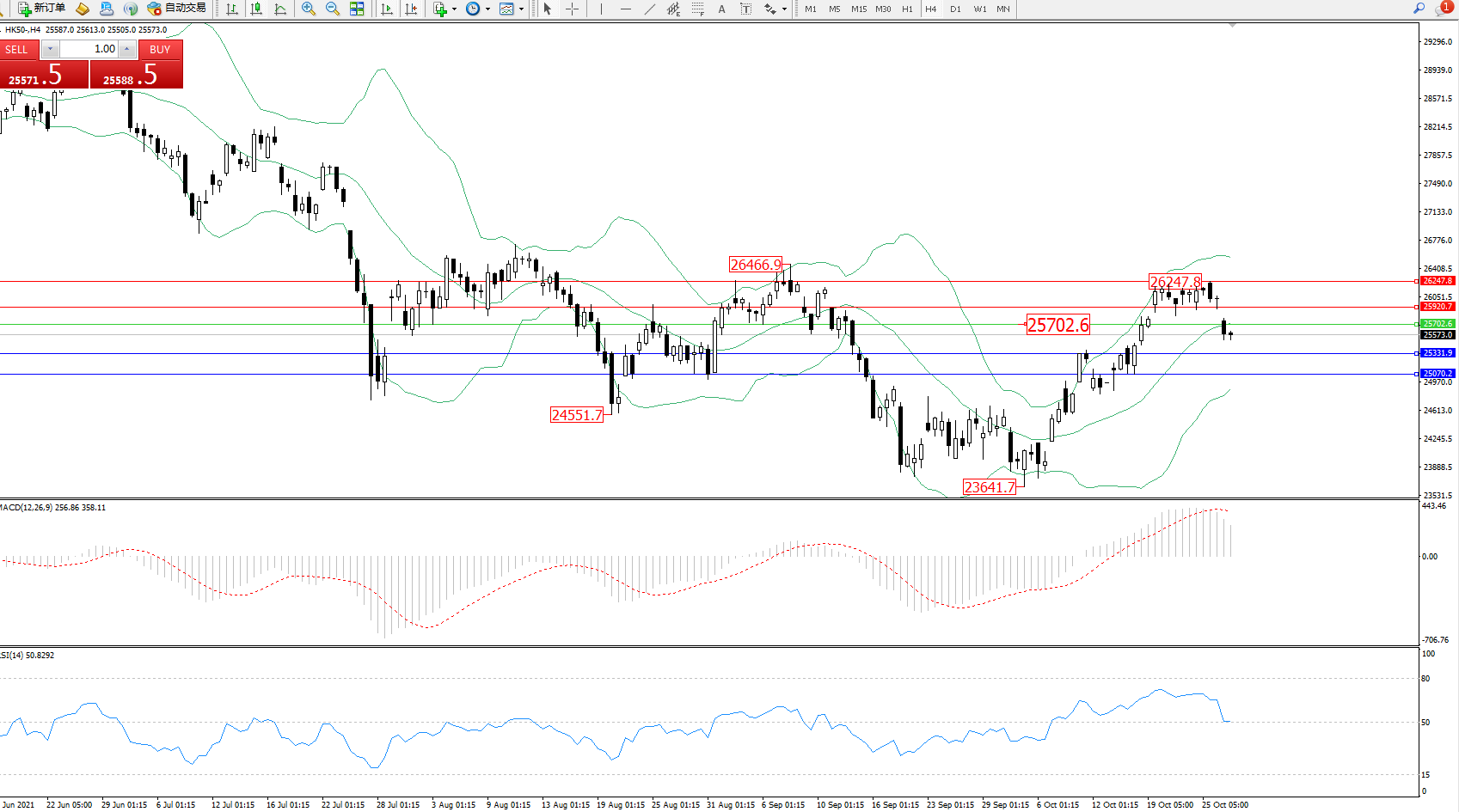 恒指HK50 ——4小时K线图显示: