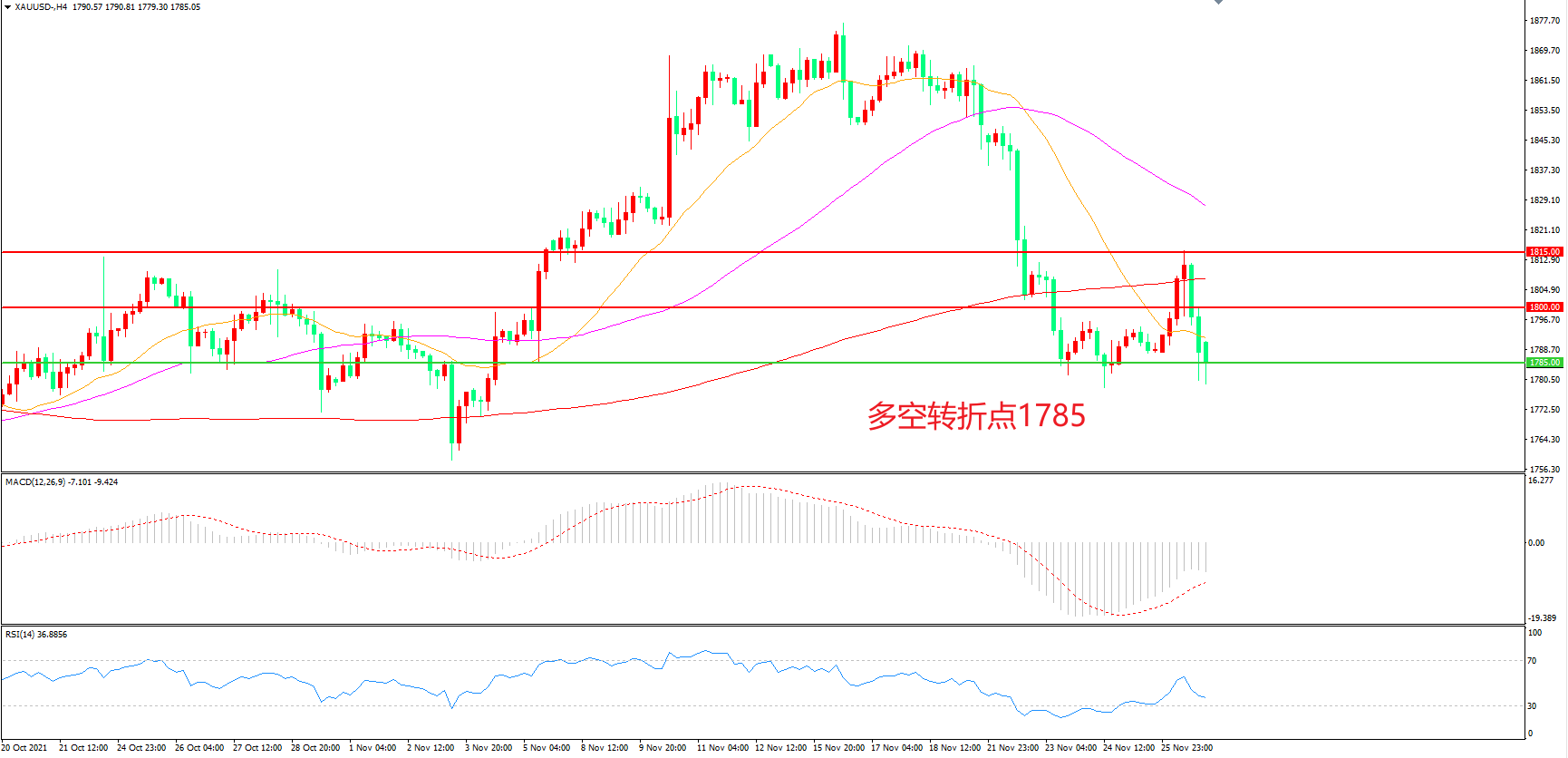 交易策略:在1785.00之下看跌,目标1763.00 1750.00