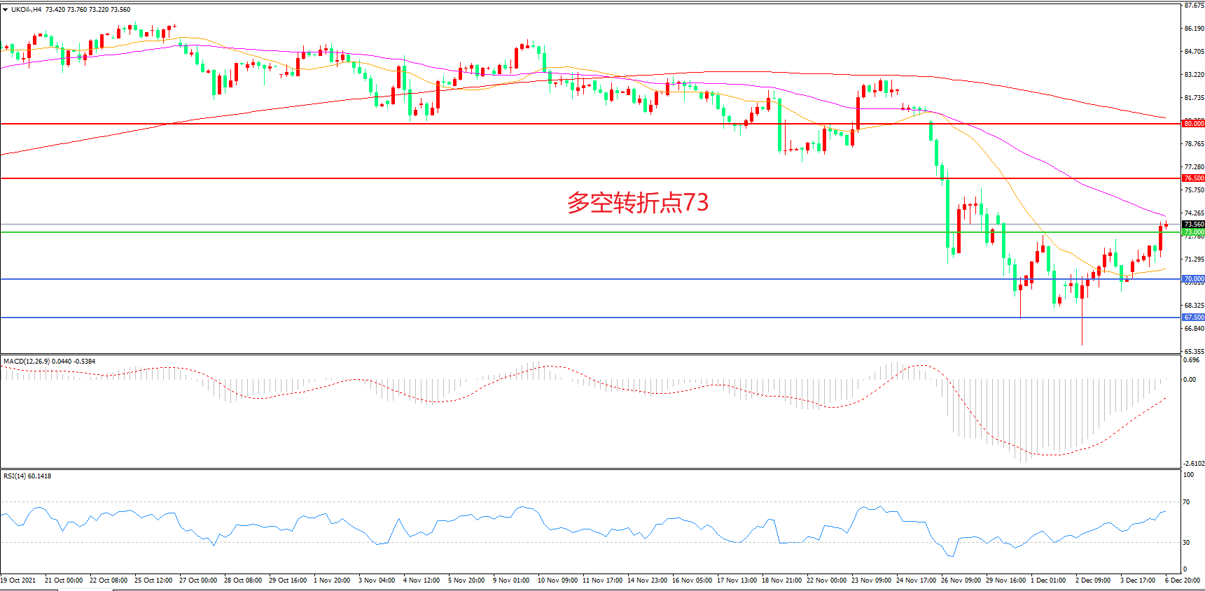 多空转折点:73.00