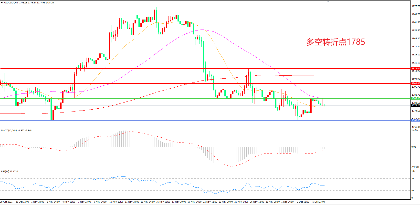 多空转折点:1785.00