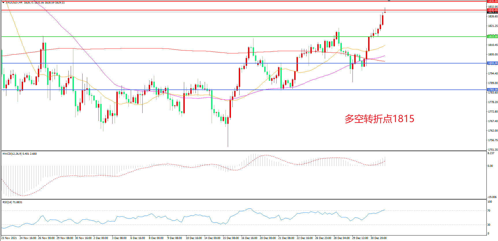 交易策略:在1815.00之上看涨,目标1830..00       1845.00
